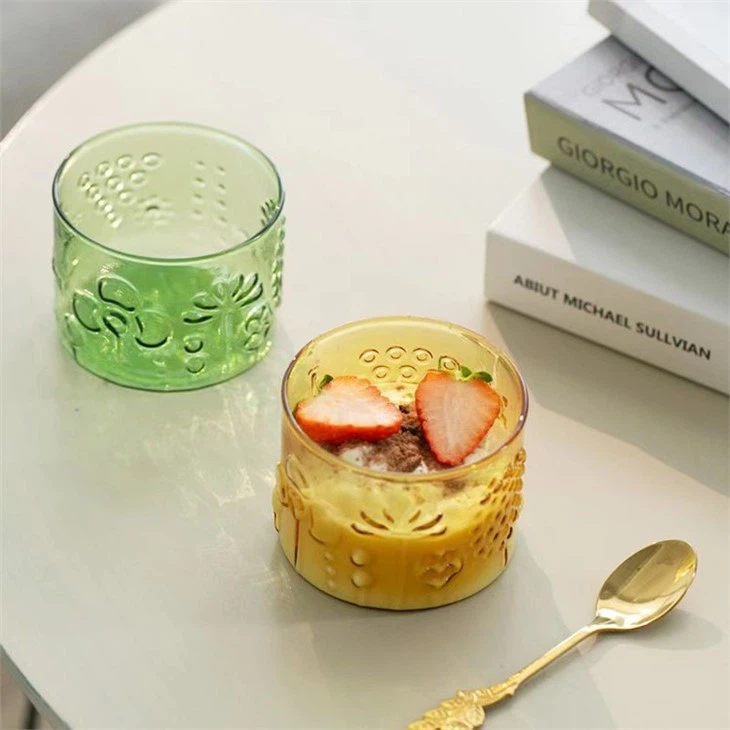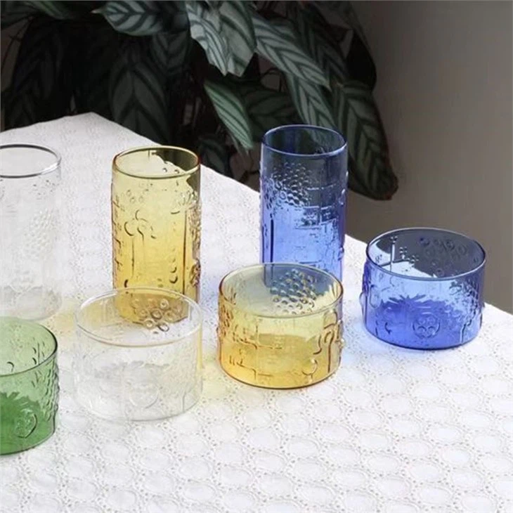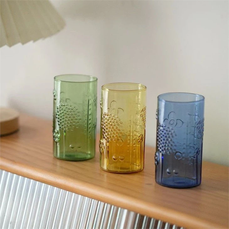 فنجان های نوشیدنی شیشه ای رنگی در دو سبک یکی با قطر 6 سانتی متر، ارتفاع 11 سانتی متر و ظرفیت 230 میلی لیتر موجود می باشد. قطر یکی 8 سانتی متر، ارتفاع 6 سانتی متر و ظرفیت 230 میلی لیتر است. چهار رنگ سبز، کهربایی، آبی و خاکستری وجود دارد. لیوان از شیشه سفید نشده ساخته شده است تا با استفاده از بین نرود و محو نشود. INTOWALK منبع تامین کننده محصولات شیشه ای در چین است.
