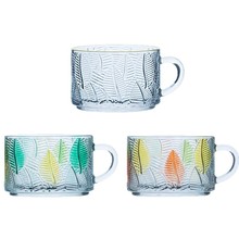 3 فنجان صبحانه دارای شیشه شفاف و روشن است که با نور خیره کننده می درخشد.